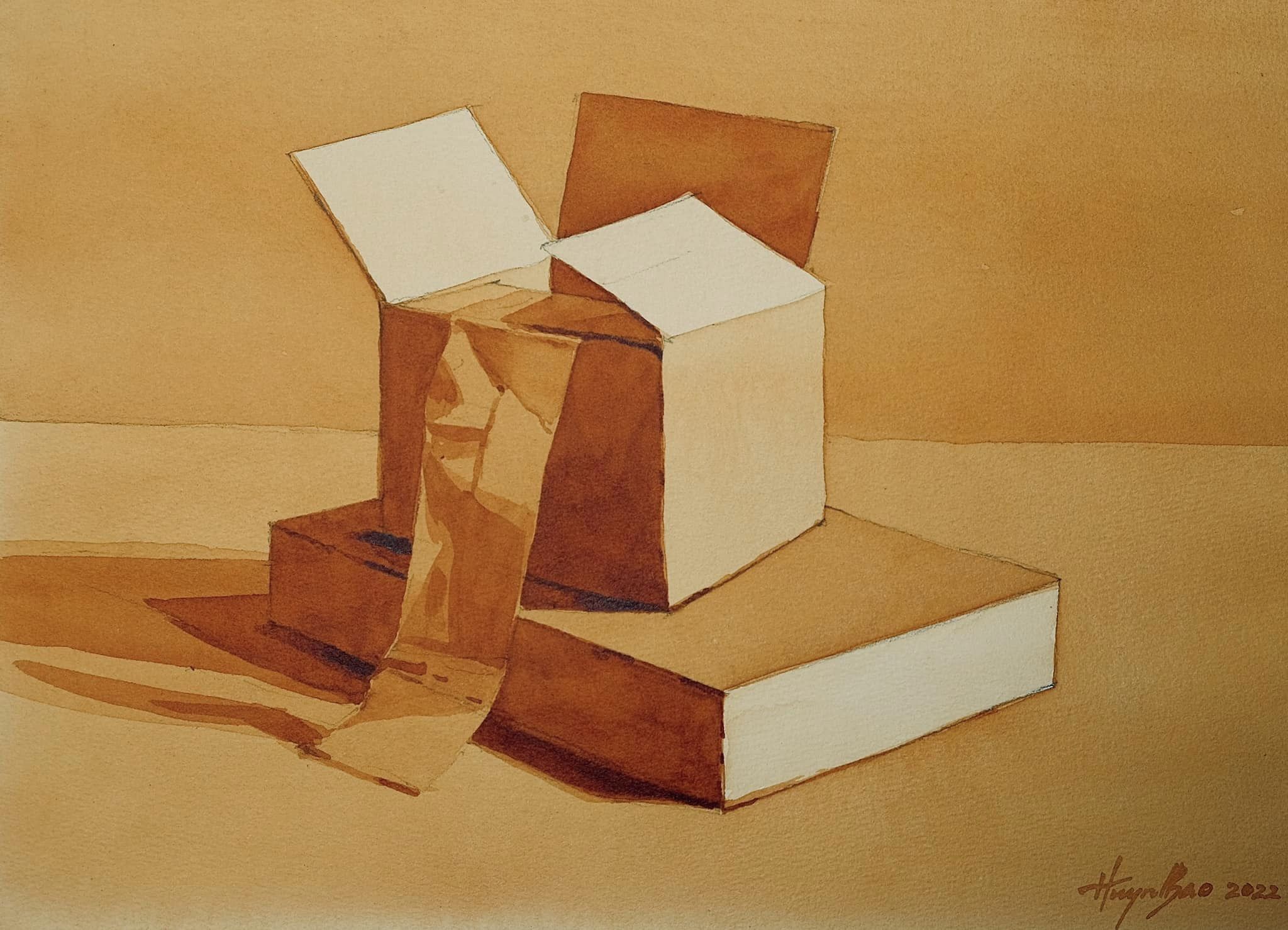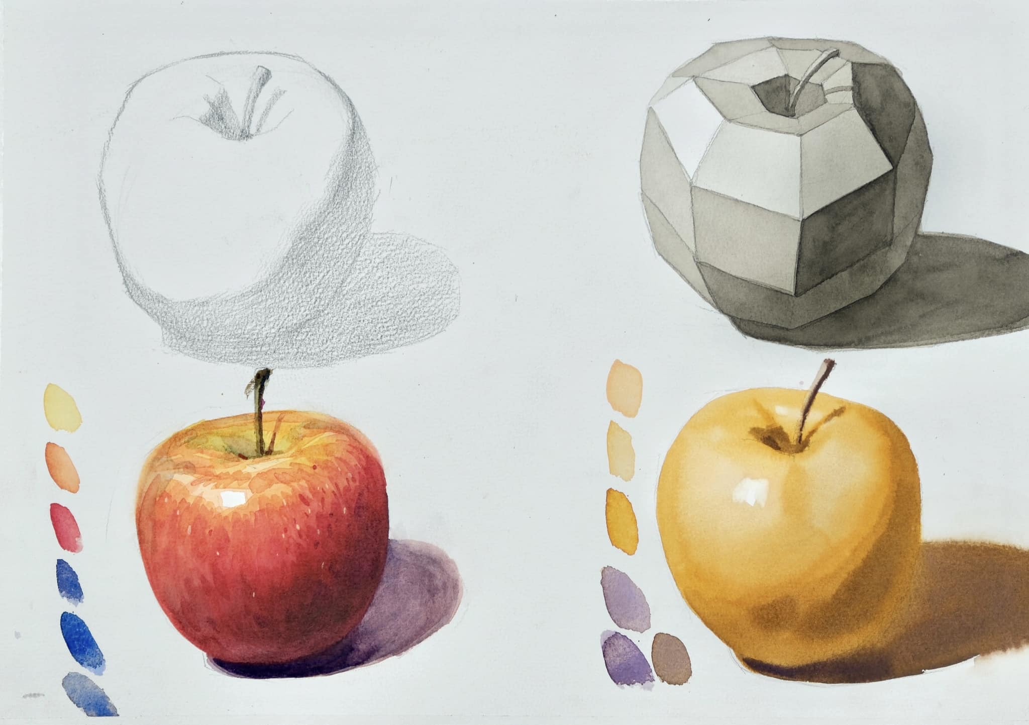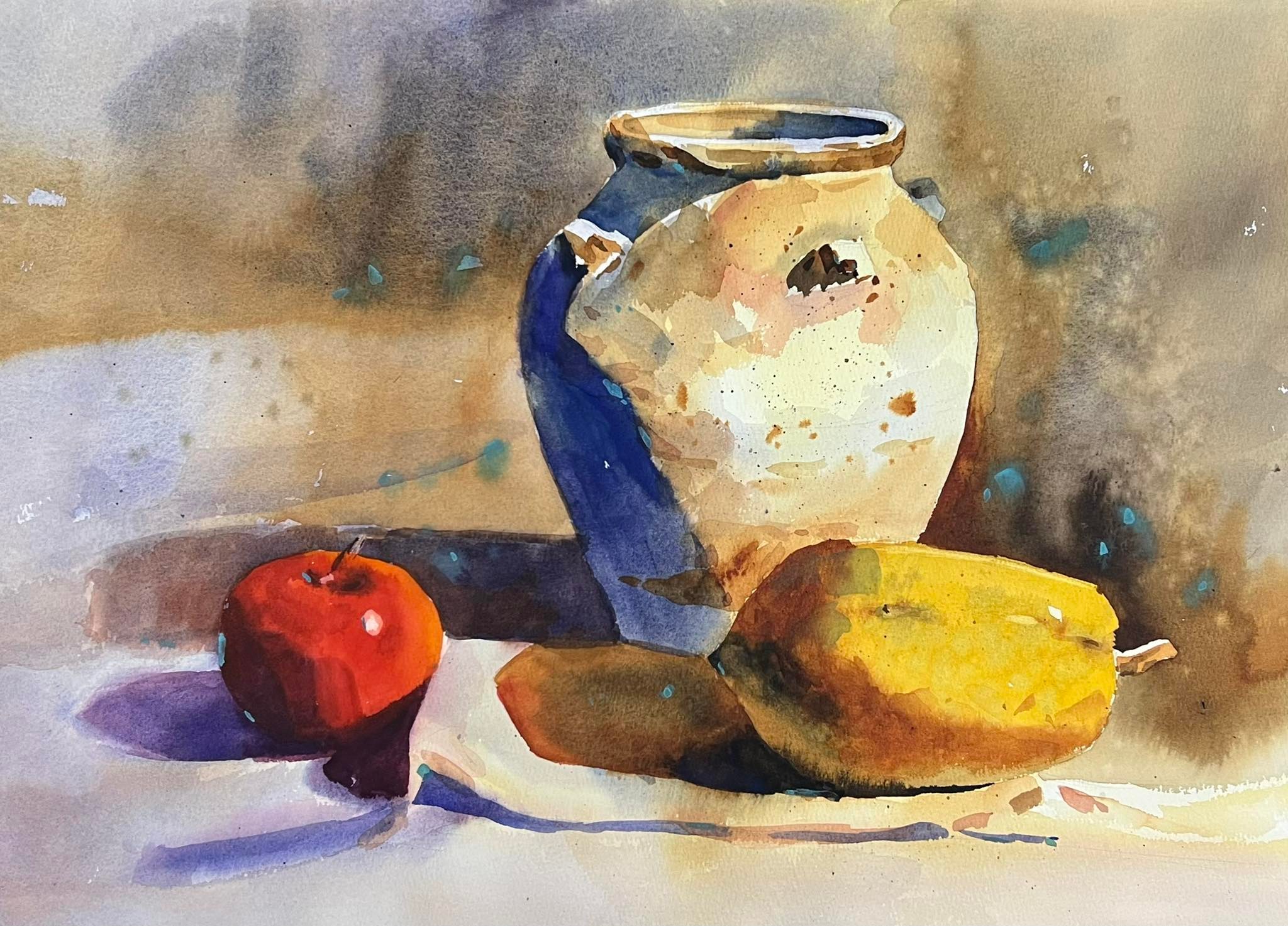 ▪️ Ứng dụng hình khối cơ bản & kỹ thuật màu nước đa dạng để vẽ tranh tĩnh vật màu nước đơn giản